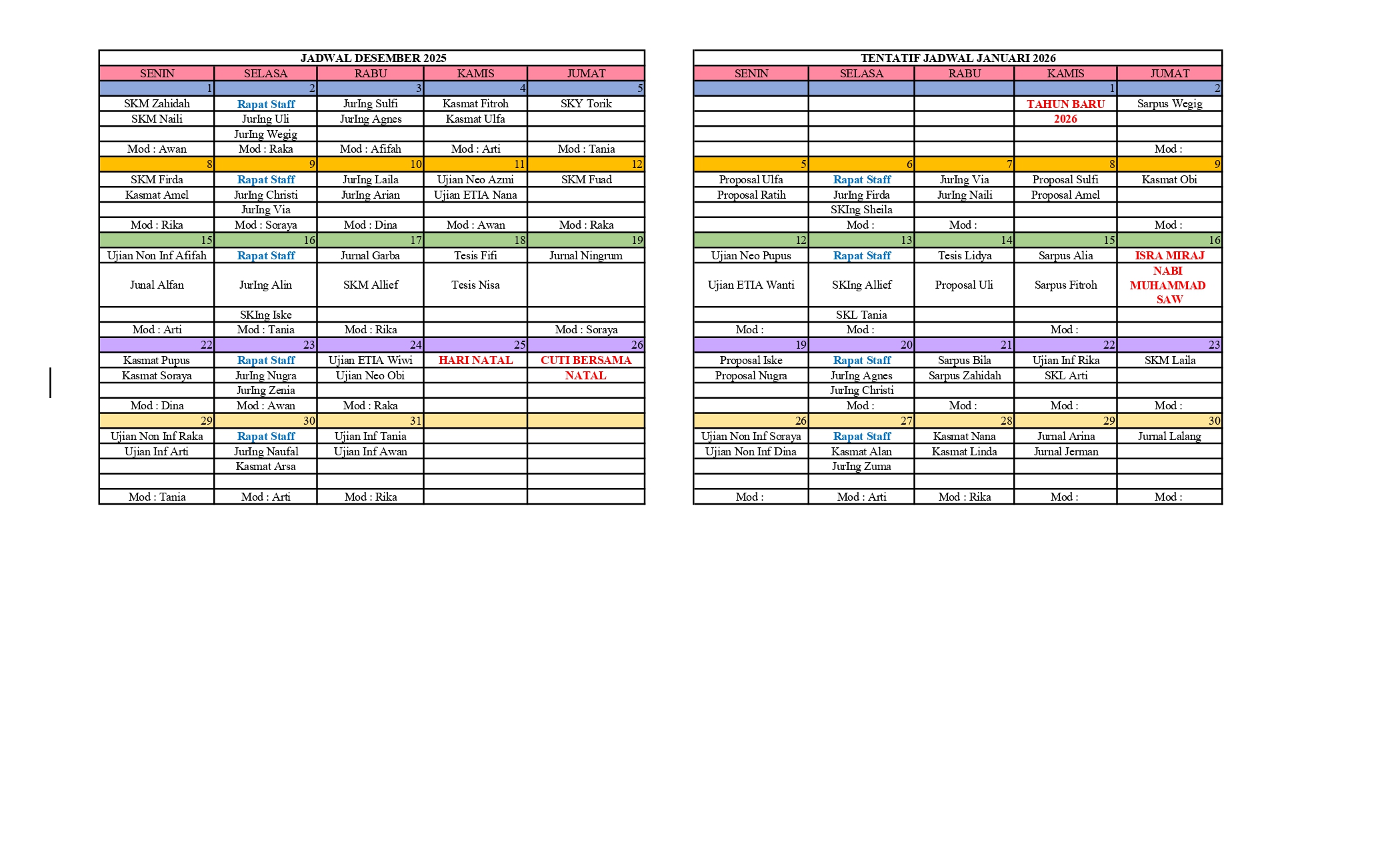 Jadwal Ilmiah Bulan Desember - Januari 2026