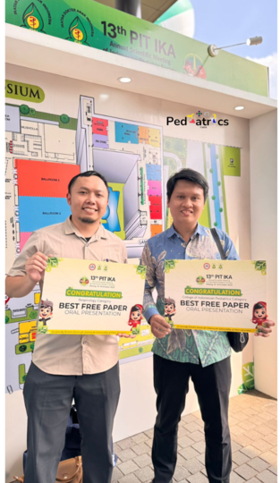 Selain Symposium dan Workshop yang diikuti oleh Mahasiswa, Dokter Umum, Dokter Spesialis juga diikuti oleh PPDS. Salah satu PPDS Prodi Ilmu Kesehatan Anak dr.Hanif Nugra Pujianto terpilih sebagai Best Free Paper Oral Presentation dan Salah satu Staff Pengajar Prodi Ilmu Kesehatan Anak dr. Irfan Dzakir Nugroho, Sp.A, Subsp.HO(K), M.Biomed terpilih sebagai Best Free Paper Oral Presentation.