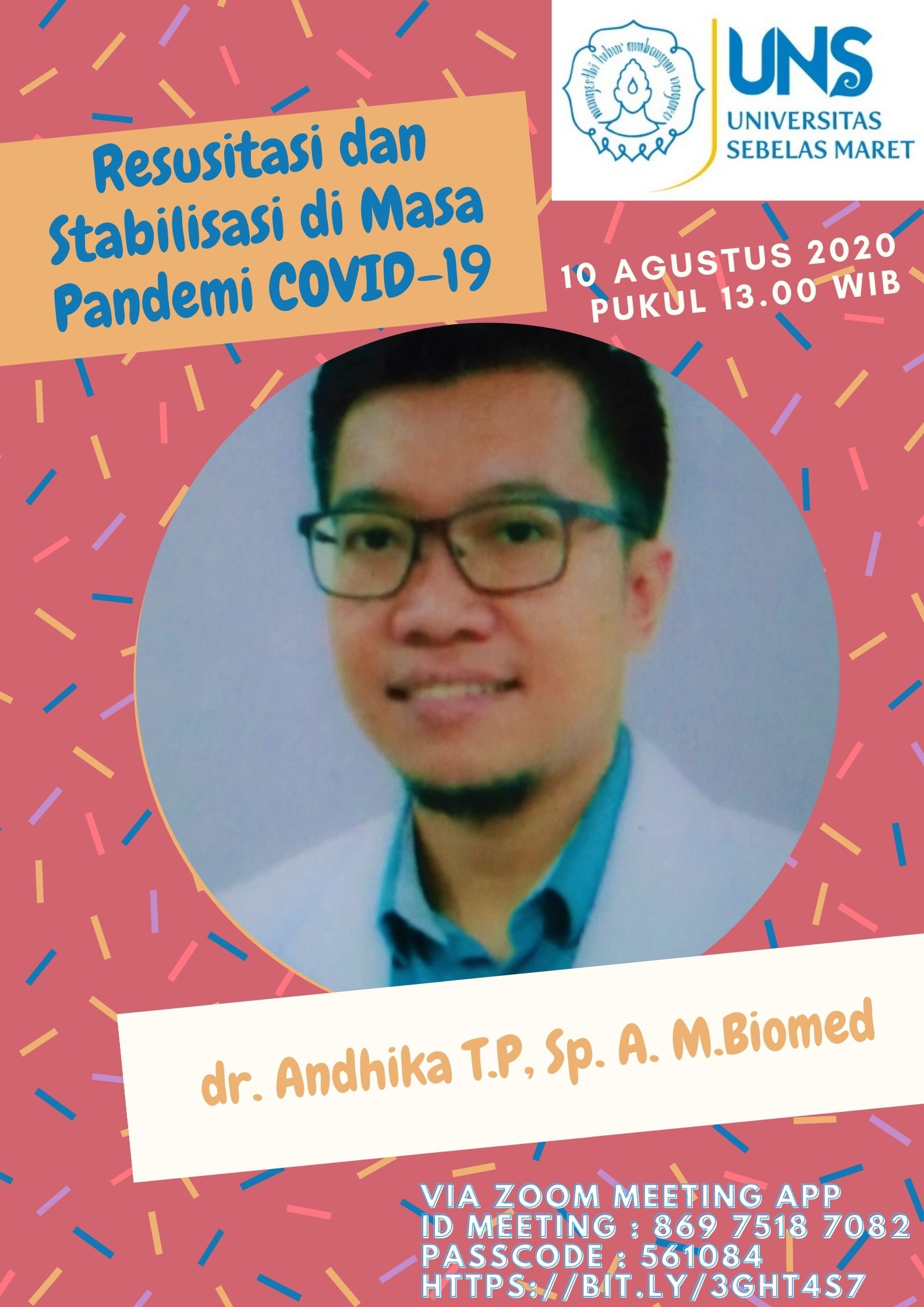 Prodi Ilmu Kesehatan Anak menyelenggarakan Workshop dengan tema "Resusitasi dan Stabilisasi di Masa Pandemi COVID-19" yang dilaksanakan pada tanggal 10 Agustus 2020 via daring menggunakan aplikasi zoom meeting. Pembicara workshop adalah dr. Andhika Trisna Putra, Sp.A, M.Biomed yang merupakan dokter spesialis anak dan staf pengajar sub divisi Neonatologi. Workshop diikuti oleh PPDS Prodi Ilmu Kesehatan Anak.