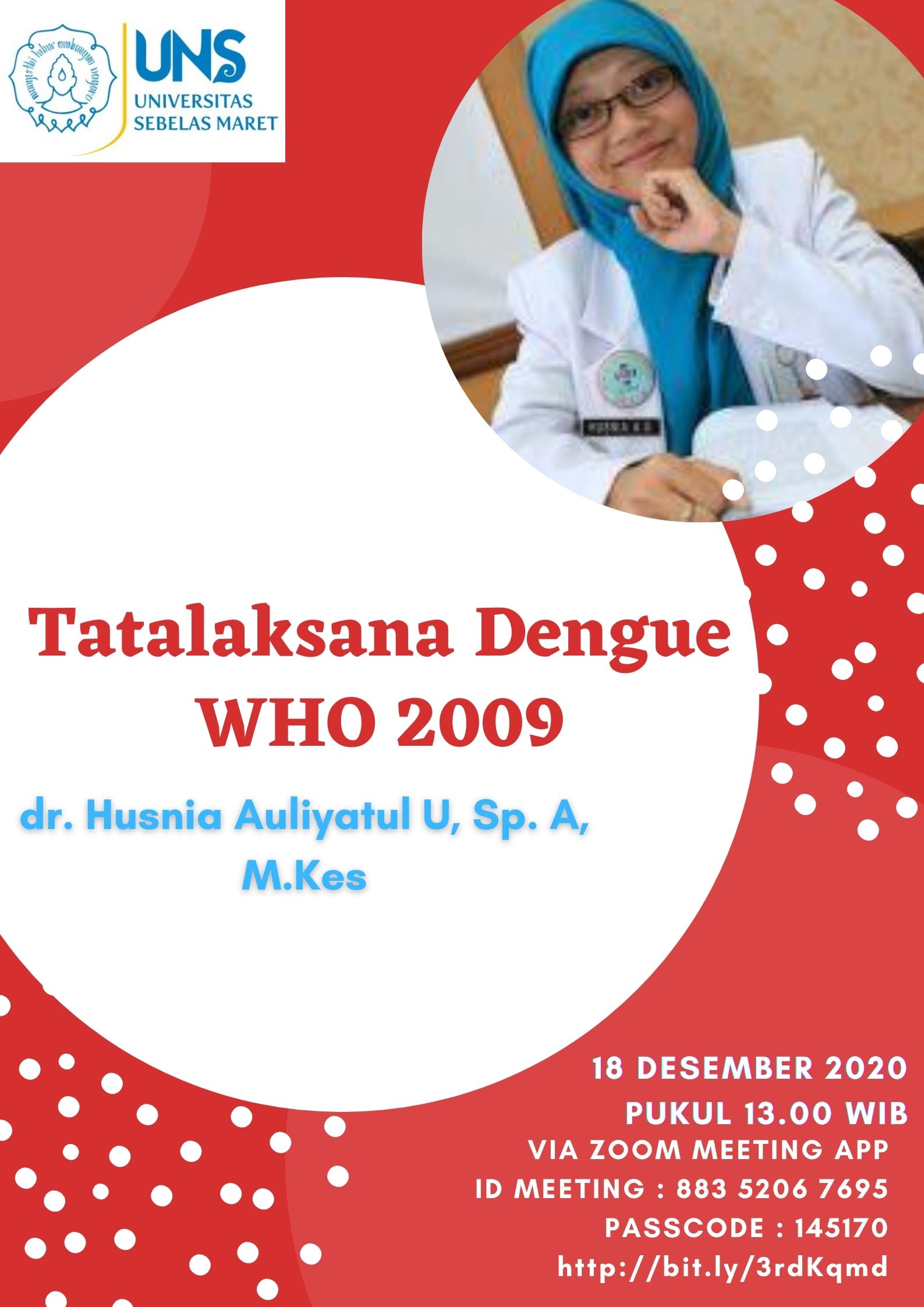 Prodi Ilmu Kesehatan Anak menyelenggarakan Workshop "Tatalaksana Dengue WHO 2009" yang dilaksanakan pada tanggal 18 Desember 2020 via daring menggunakan aplikasi zoom meeting. Pembicara workshop adalah dr. Husnia Auliyatul Umma, Sp. A, M.Kes yang merupakan dokter spesialis anak dan staf pengajar sub divisi Infeksi dan Penyakit Tropik. Workshop diikuti oleh PPDS Prodi Ilmu Kesehatan Anak.