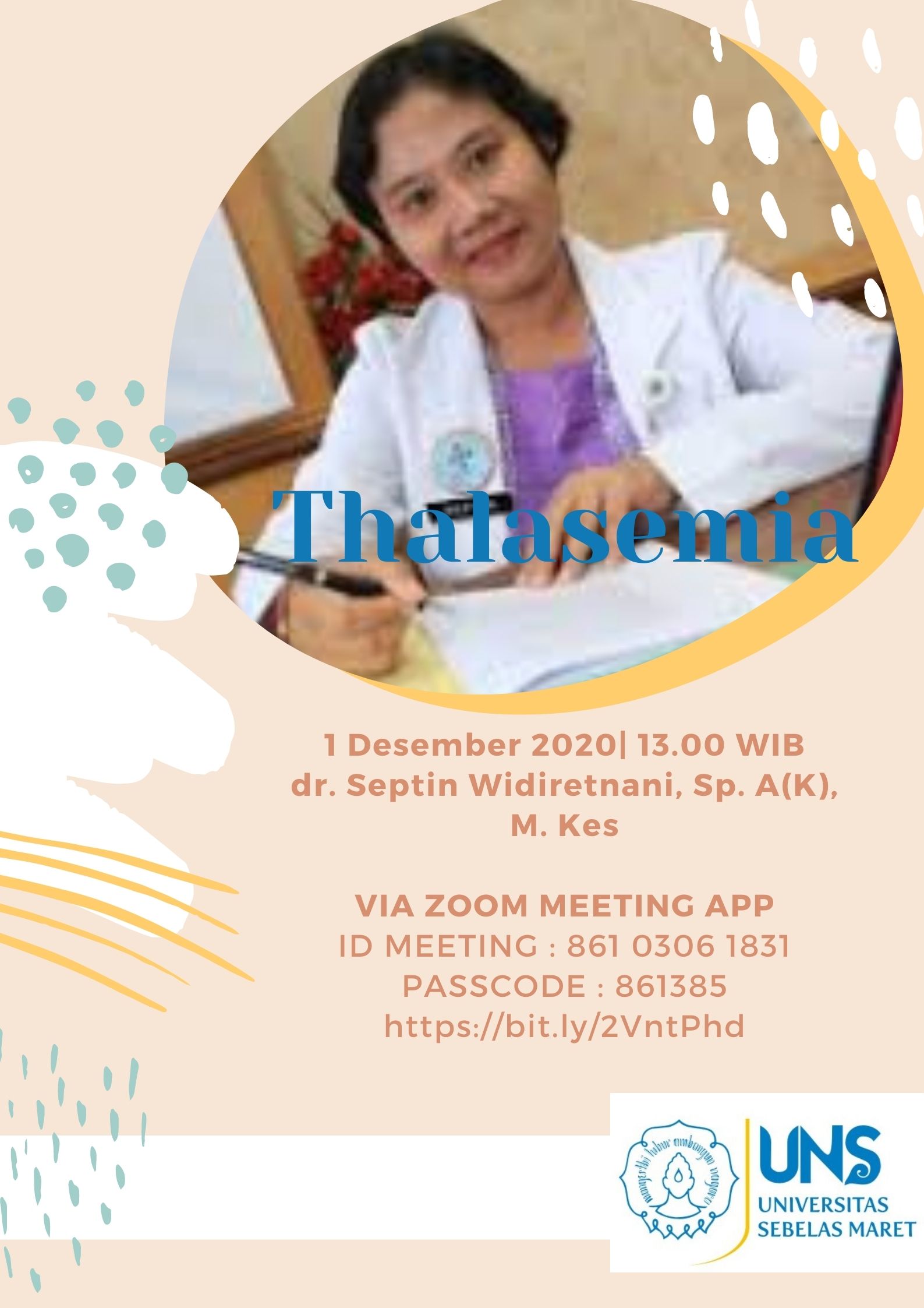 Prodi Ilmu Kesehatan Anak menyelenggarakan Workshop "Thalasemia" yang dilaksanakan pada tanggal 1 Desember 2020 via daring menggunakan aplikasi zoom meeting. Pembicara workshop adalah dr. Septin Widiretnani, Sp. A(K), M.Kes yang merupakan dokter spesialis anak dan staf pengajar sub divisi Hematologi Onkologi. Workshop diikuti oleh PPDS Prodi Ilmu Kesehatan Anak.